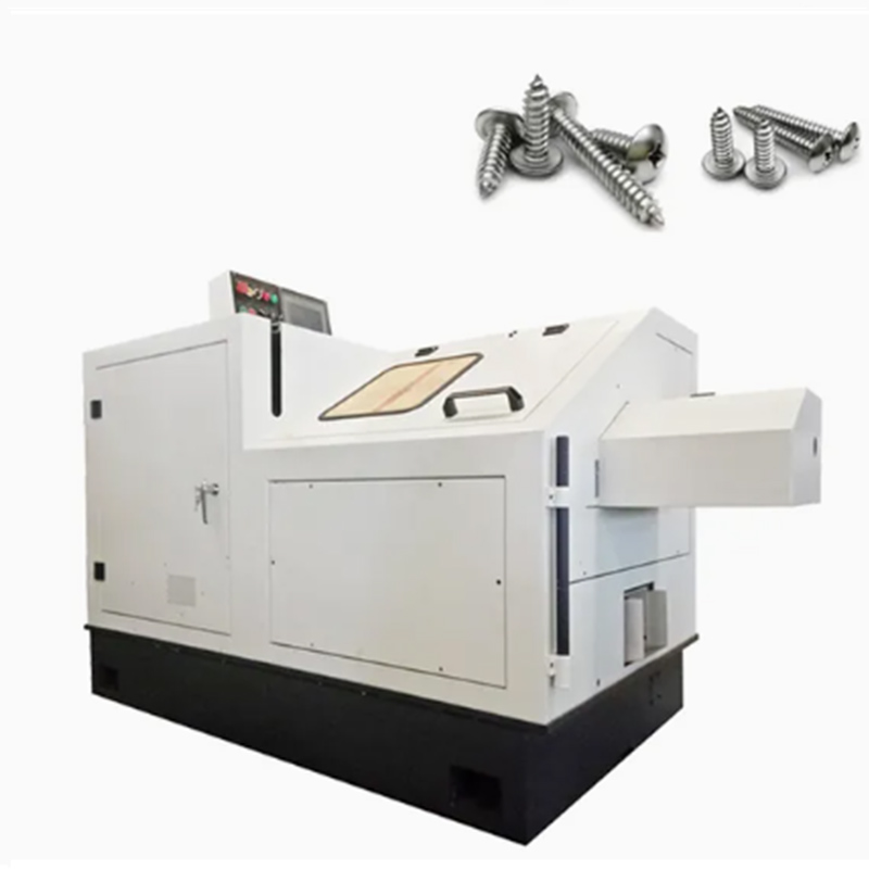 تم تصميم آلة صنع اللولب الخشبية الأوتوماتيكي خصيصًا لإنتاج مسامير خشبية. أدخل السلك في الجهاز ، وقم بقطعه إلى الطول المطلوب ، ثم اضغط على رأس المسمار ، ثم قم بتشكيل الخيط السميك المناسب للخشب ، وأخيراً قم بإنشاء طرف حاد.